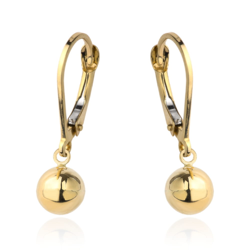 Złote kolczyki wisząca kulka na angielskim zapięciu 585
