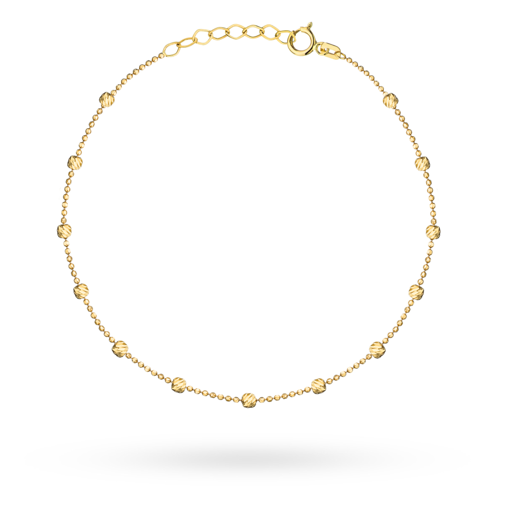 Złota bransoletka kulkowa z diamentowanymi kulkami 17+2cm 585