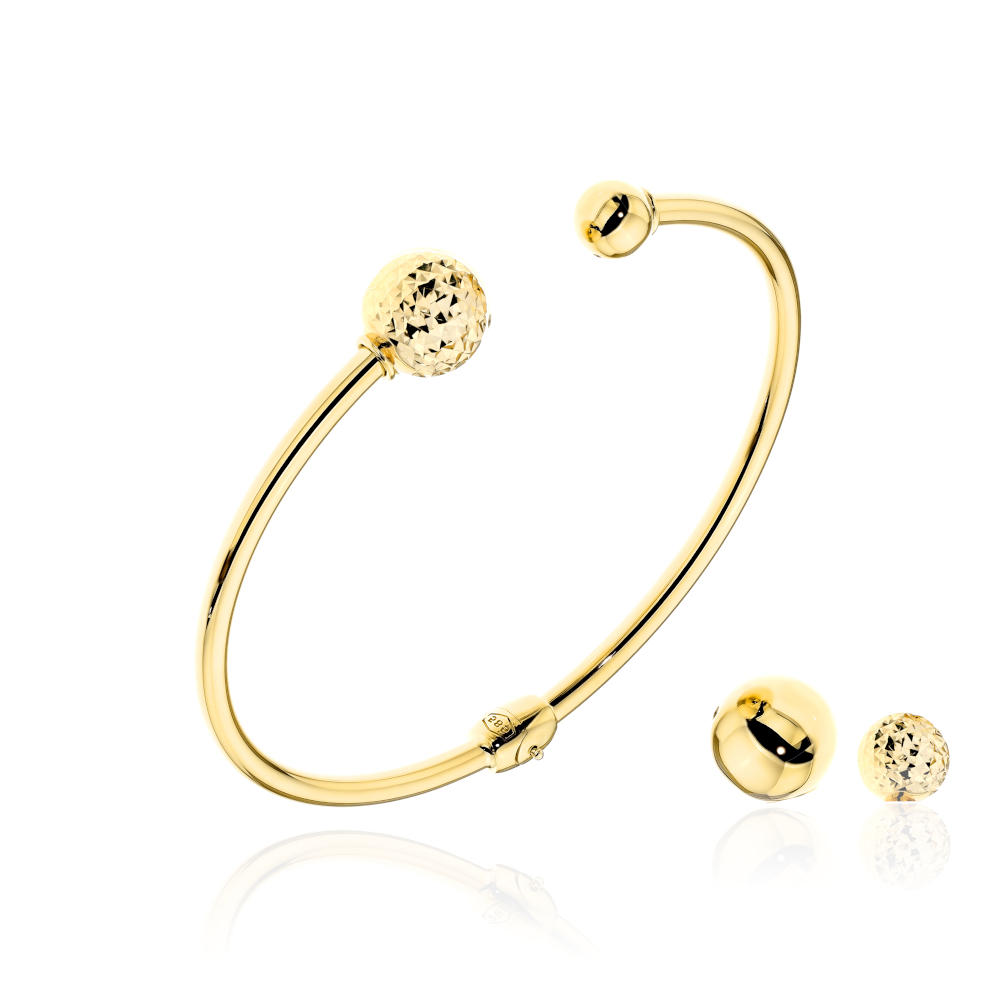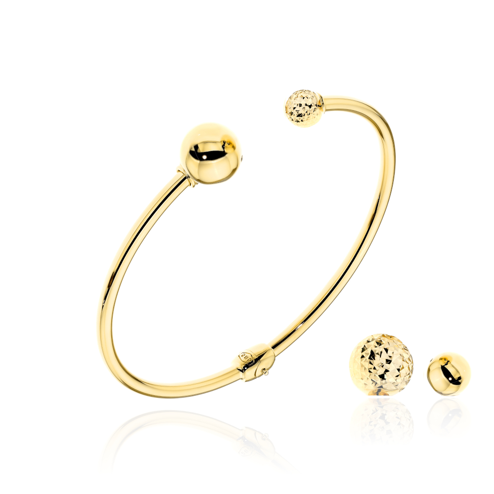 Złota bransoletka sztywna z wymiennymi kulkami 58x48mm 585